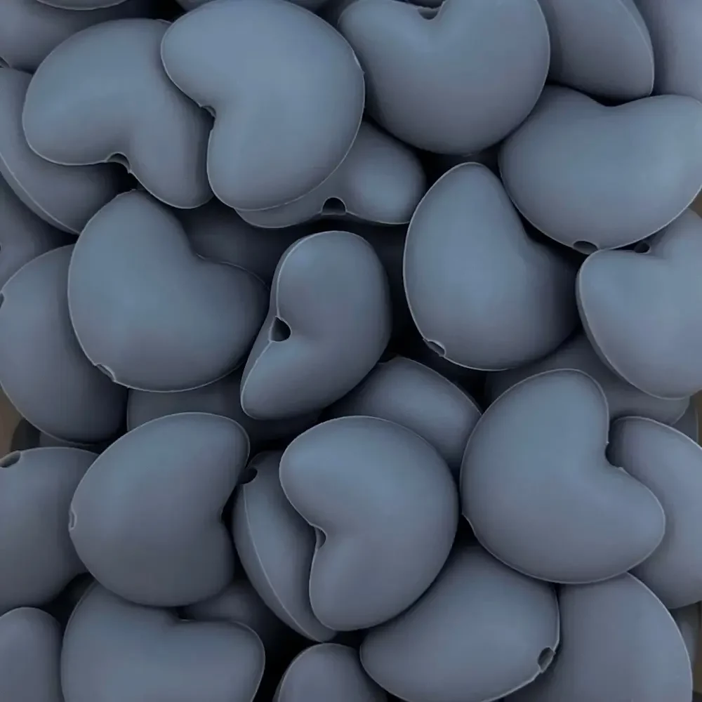 Silikonihelmi, sydän 20mm harmaa